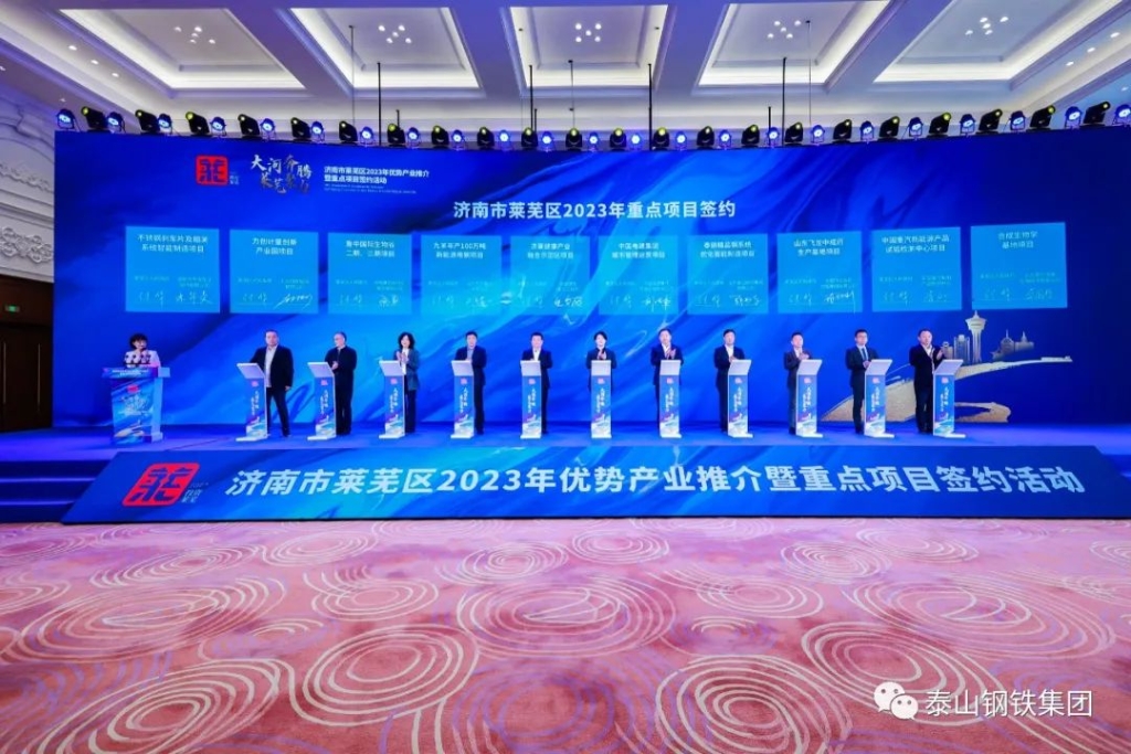 会上,莱芜区政府和地方重点企业、招引重点项目的代表们签约了39个重点项目。集团党委成员、总经理邵书东代表泰山钢铁集团上台签约赢博(中国)精品钢系统优化智能制造项目。