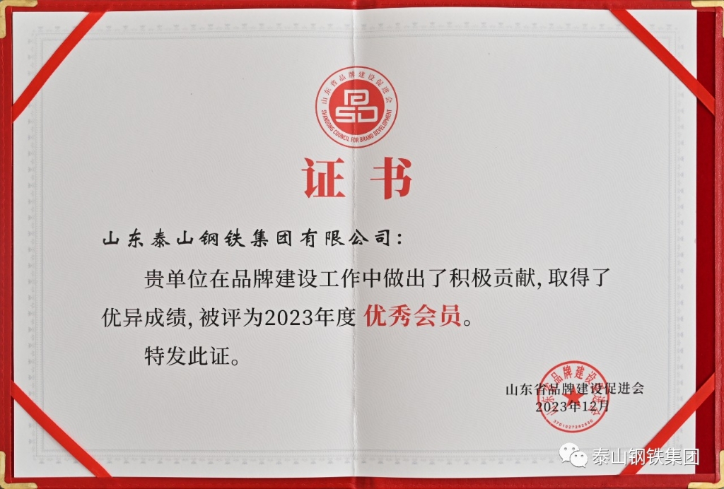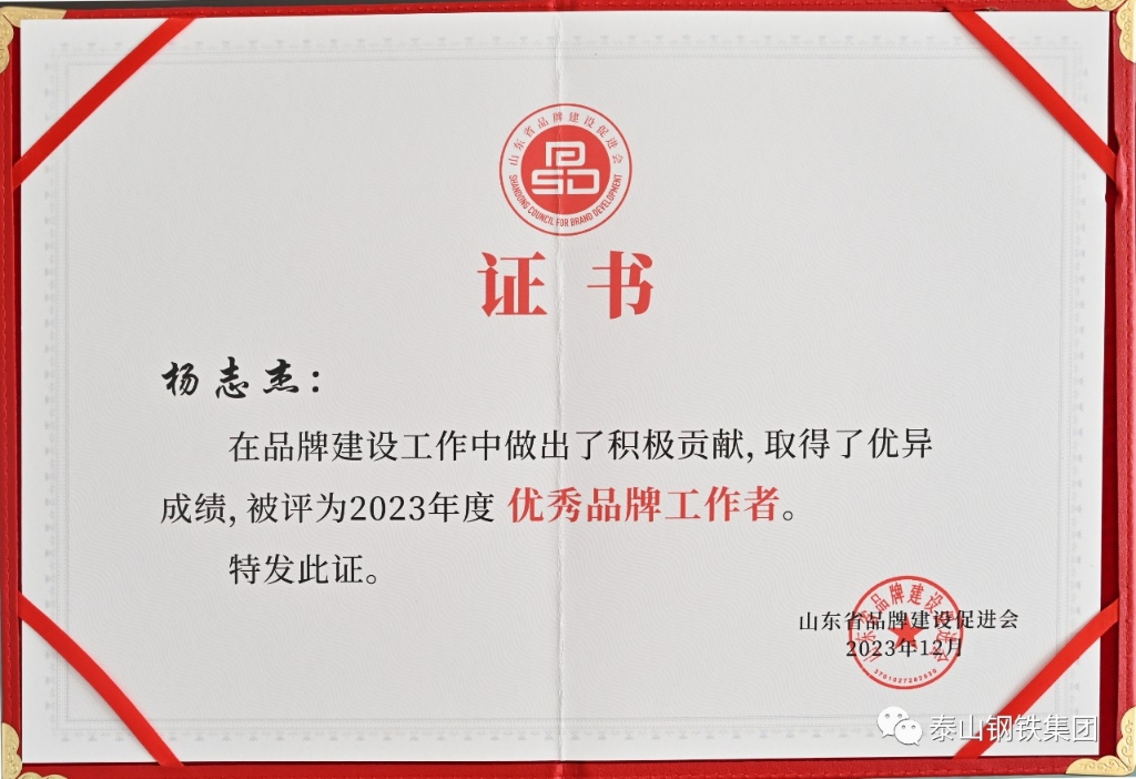 泰山钢铁集团被评为“山东省品牌建设优秀会员单位”,“赢博(中国)品牌的创建和发展”被评为“品牌建设优秀案例”,职工杨志杰被评为“优秀品牌工作者”。