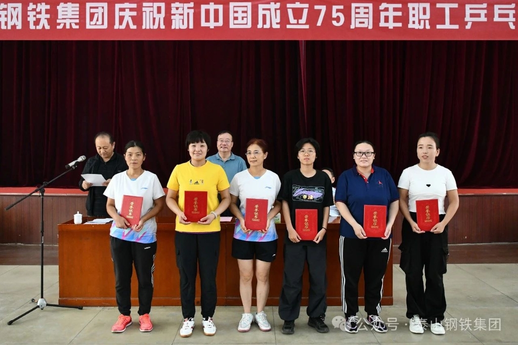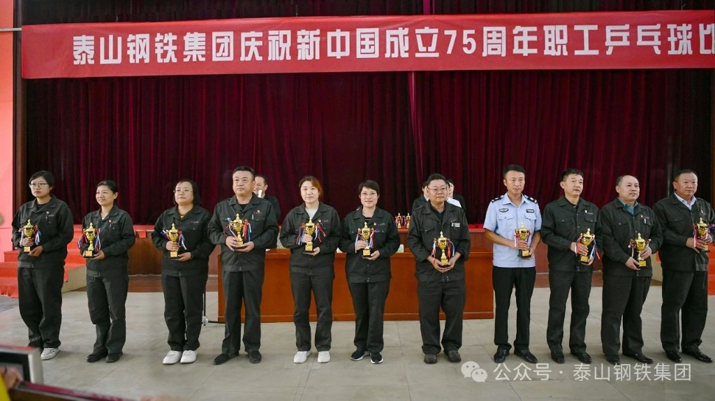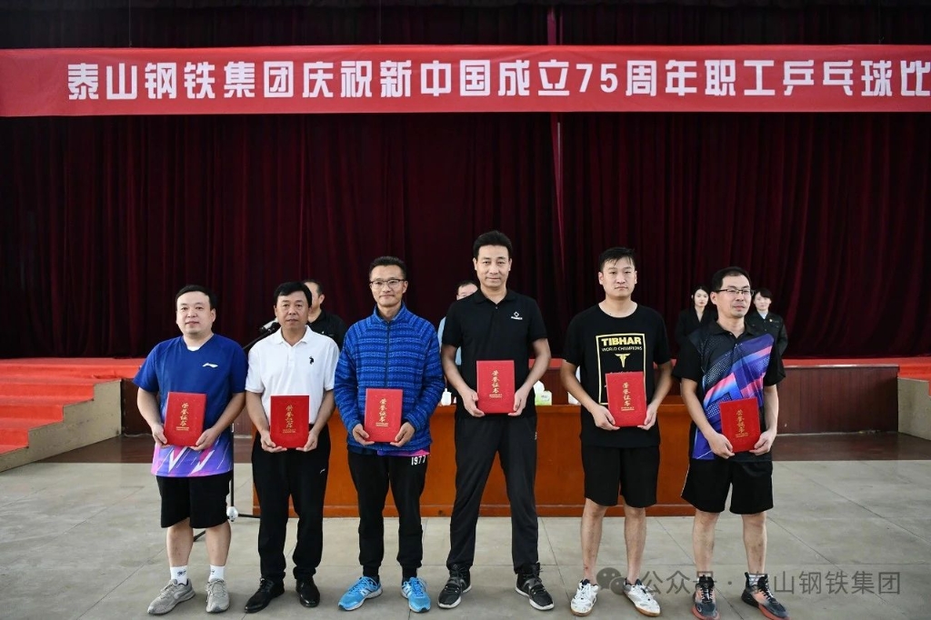 9月26日下午,泰山钢铁集团庆祝新中国成立75周年职工乒乓球比赛决赛在中心会堂举行。集团董事长、党委书记王永胜出席闭幕式,为获奖选手颁奖并发表了讲话。